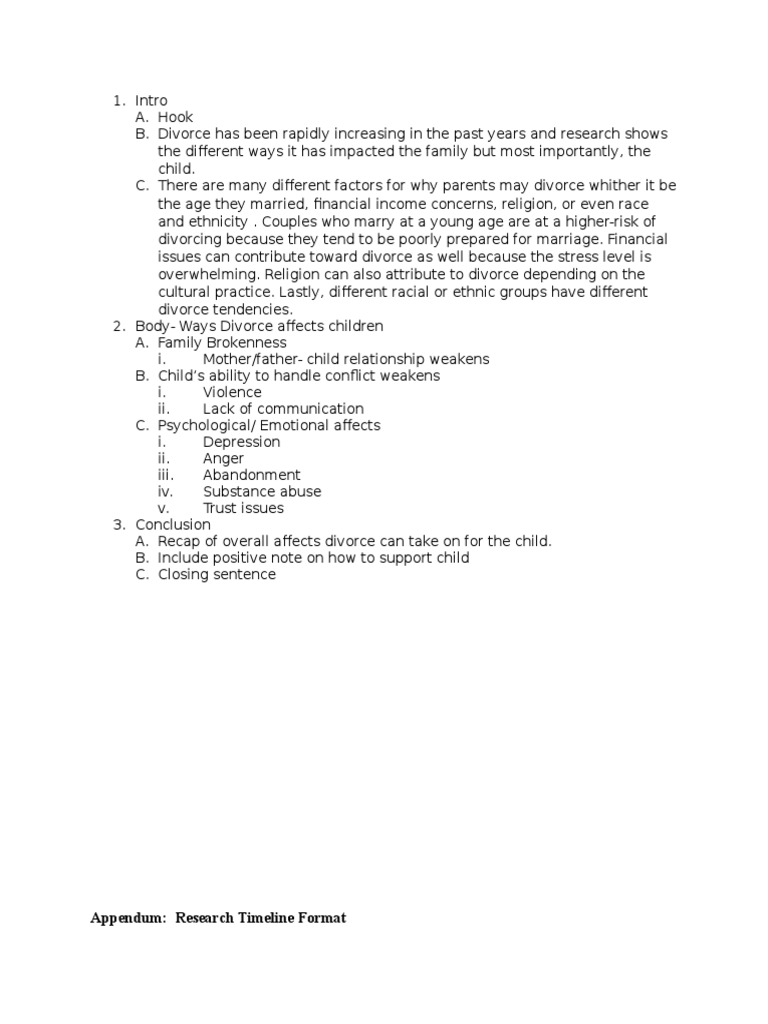Divorce research paper outline to Start a Research Paper. Research Proposal. Research Paper Topics. Research Paper Outline. Research Paper Example. Thesis Statement Examples for Research Papers. How to Write an Abstract. How to Write a Literature Review. How to Write a Hypothesis.