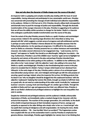Gerald presents Sheila a ring, and Sheila vows to keep it in her possession forever. After dinner, the rest of the family leave and Arthur and Gerald speak privately while drinking port. Arthur tells Gerald that, inspector calls essay, based on his public service as Lord Mayor in the town of Brumley in the North Midlandshe believes the English government might soon offer him a knighthood. This is because the Birling family, though wealthy, does not have a title as the Croft family does.